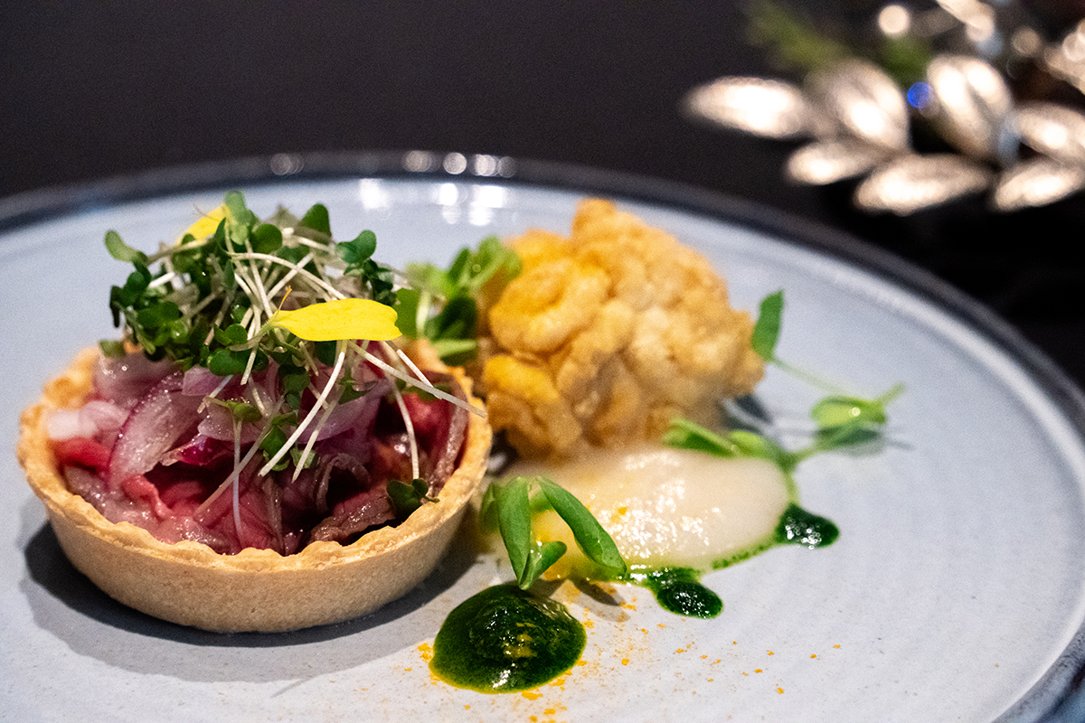 梶岡牛の低温ローストビーフ 鱈白子のフリットと蕪