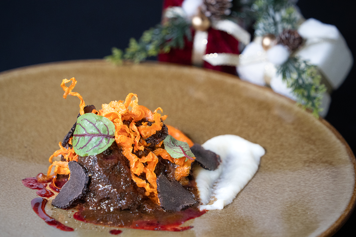 和牛ホホ肉の赤ワイン煮込みとイタリア産トリュフ