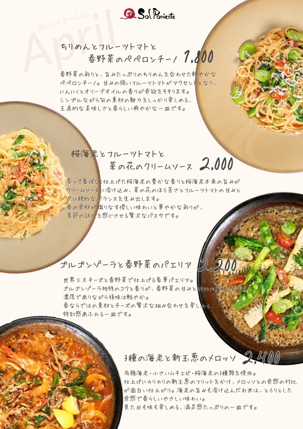 4月限定☆季節メニューのご案内