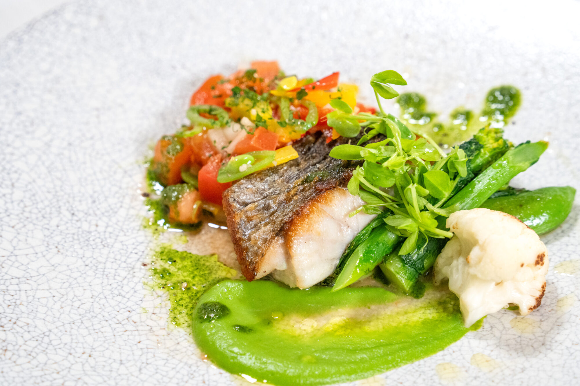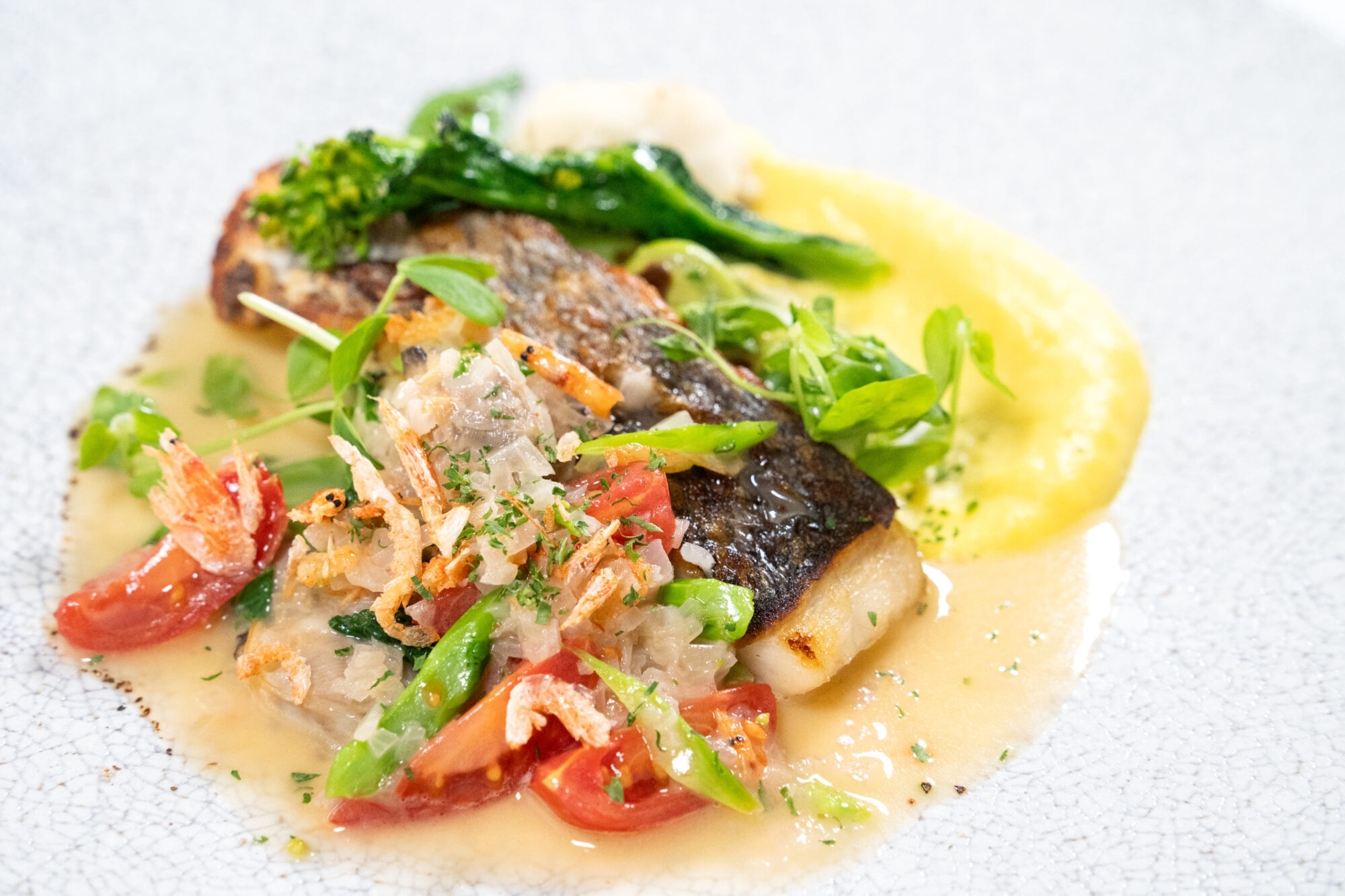 その日仕入れた新鮮な魚を香ばしくポワレに仕上げ、彩り豊かな春野菜とともに提供する一皿。アンチョビの旨みを効かせた爽やかなラヴィゴットソースが、魚の繊細な味わいを引き立てます。旬の食材の魅力をシンプルに引き出した、春らしい軽やかな味わいが楽しめる地中海スタイルの魚料理です。